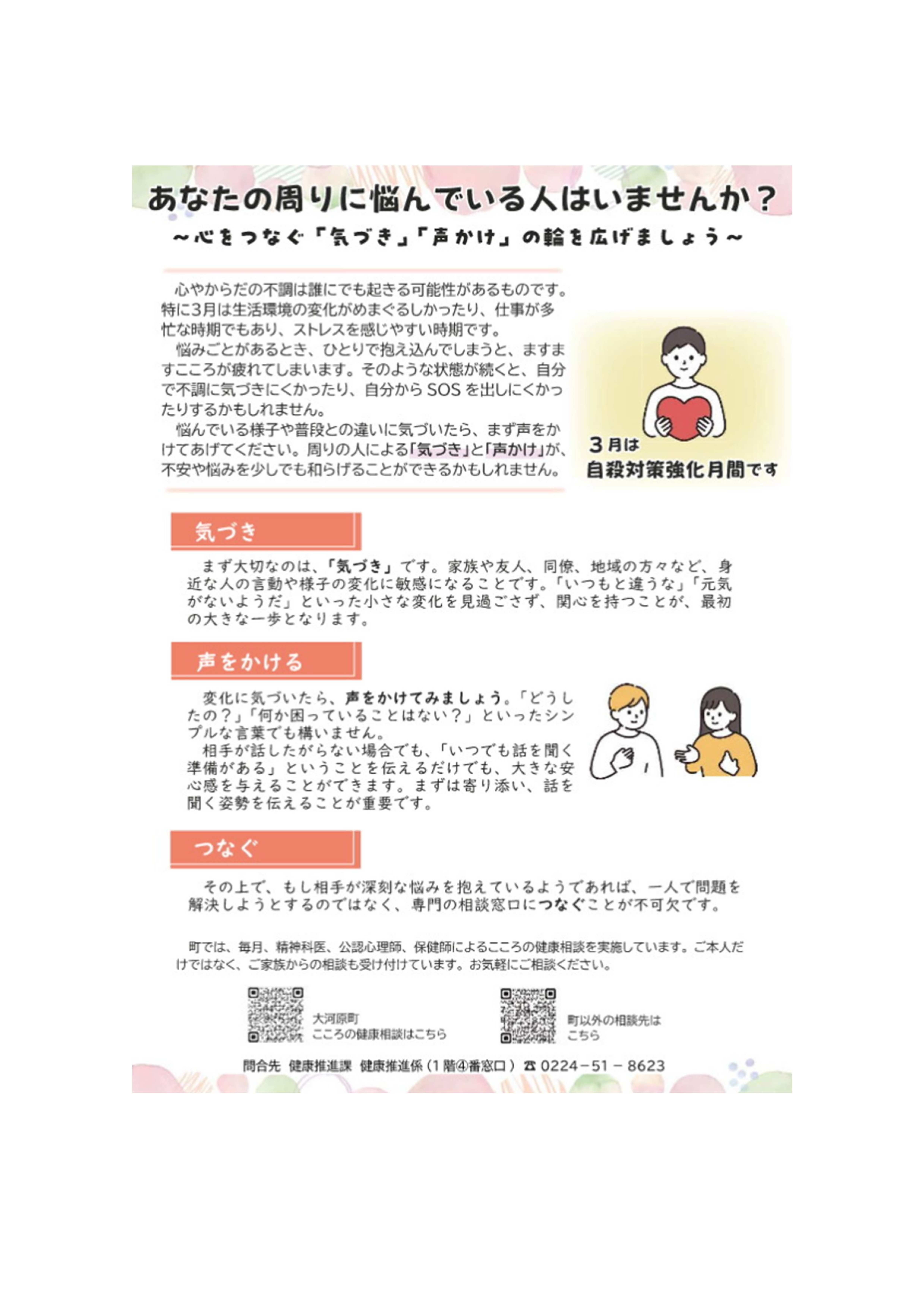 あなたの周りに悩んでいる人はいませんか?~心をつなぐ「気づき」「声かけ」の輪を広げましょう~