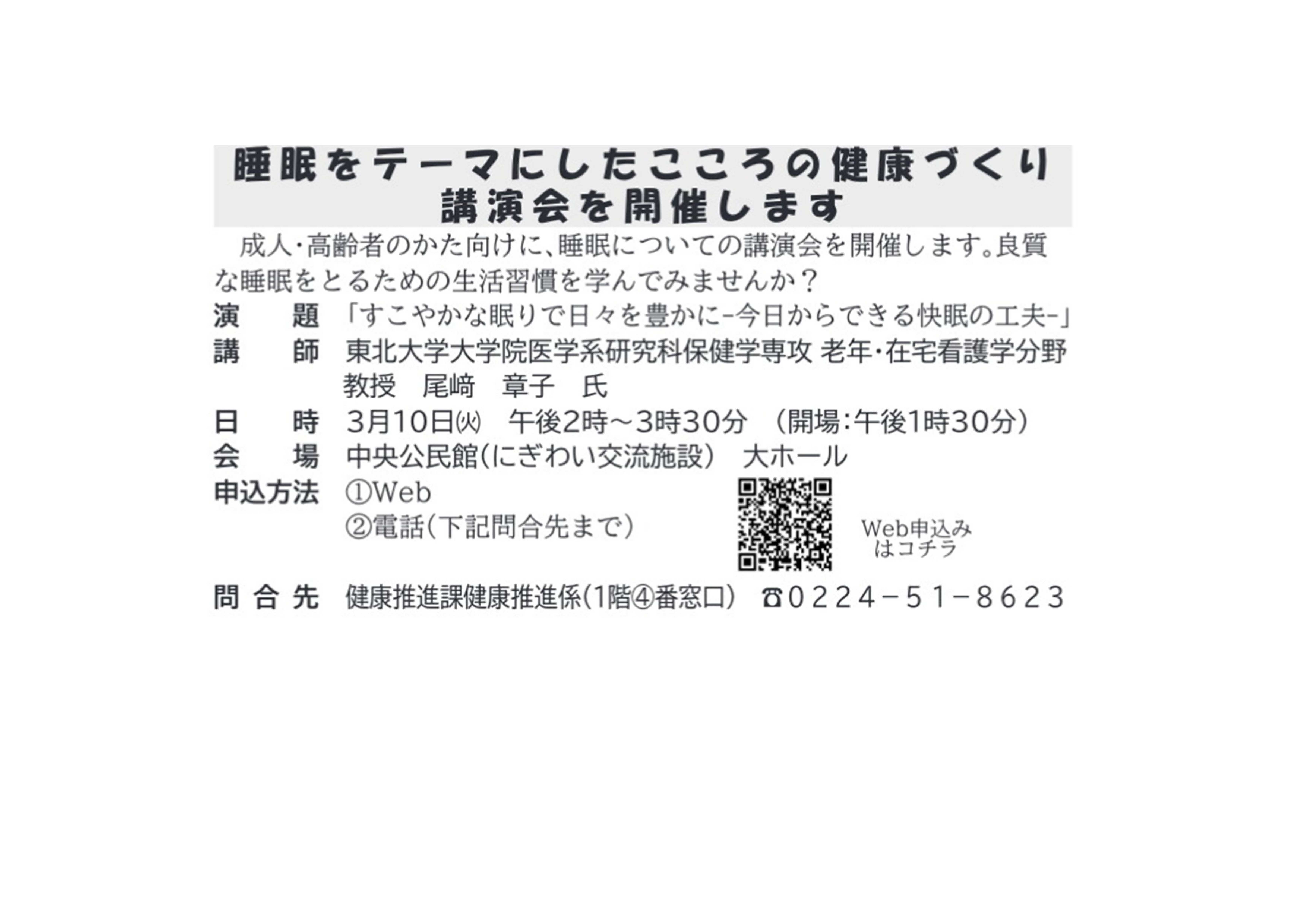 睡眠をテーマにしたこころの健康づくり講演会を開催します
