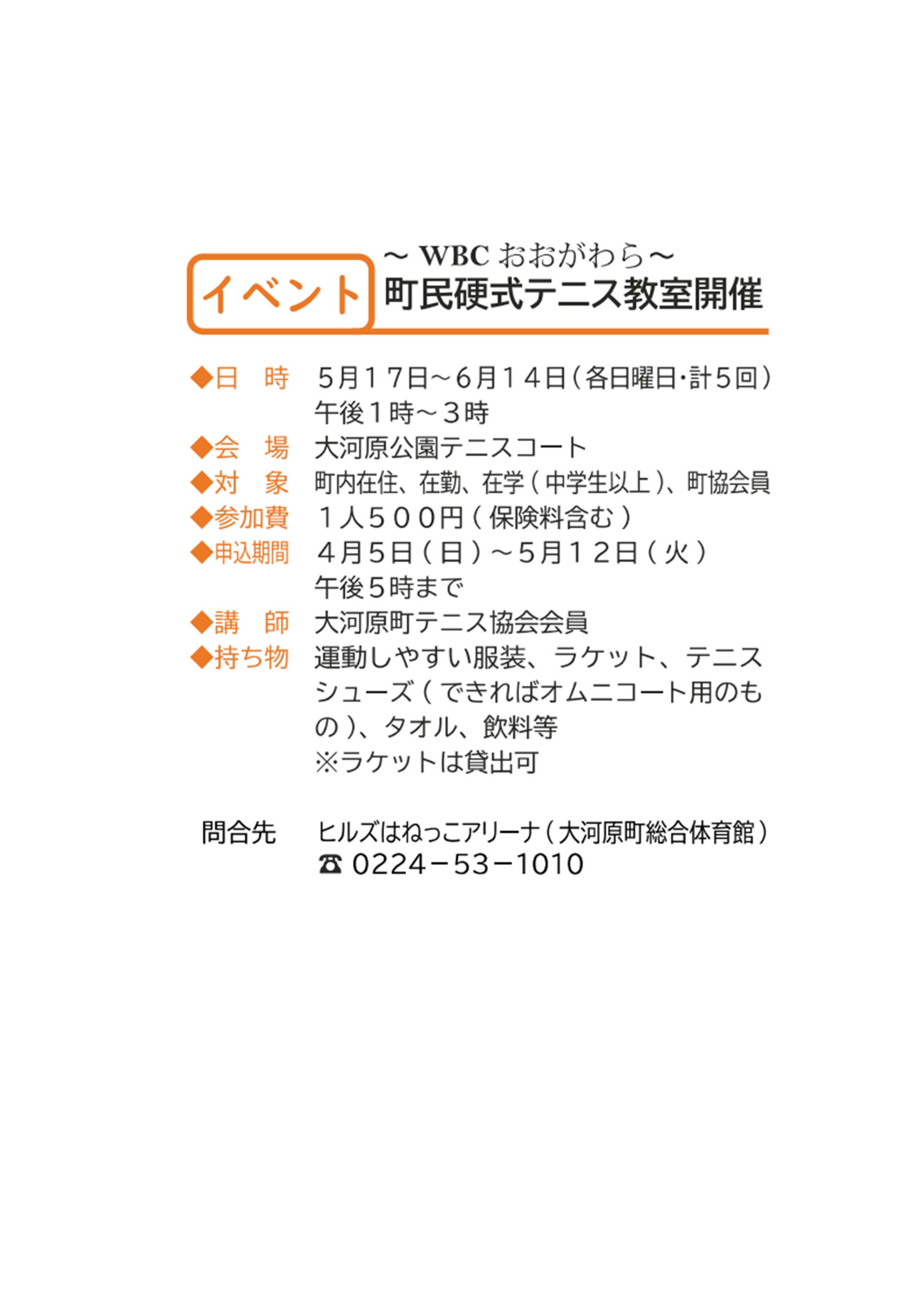 ~WBCおおがわら~町民硬式テニス教室開催