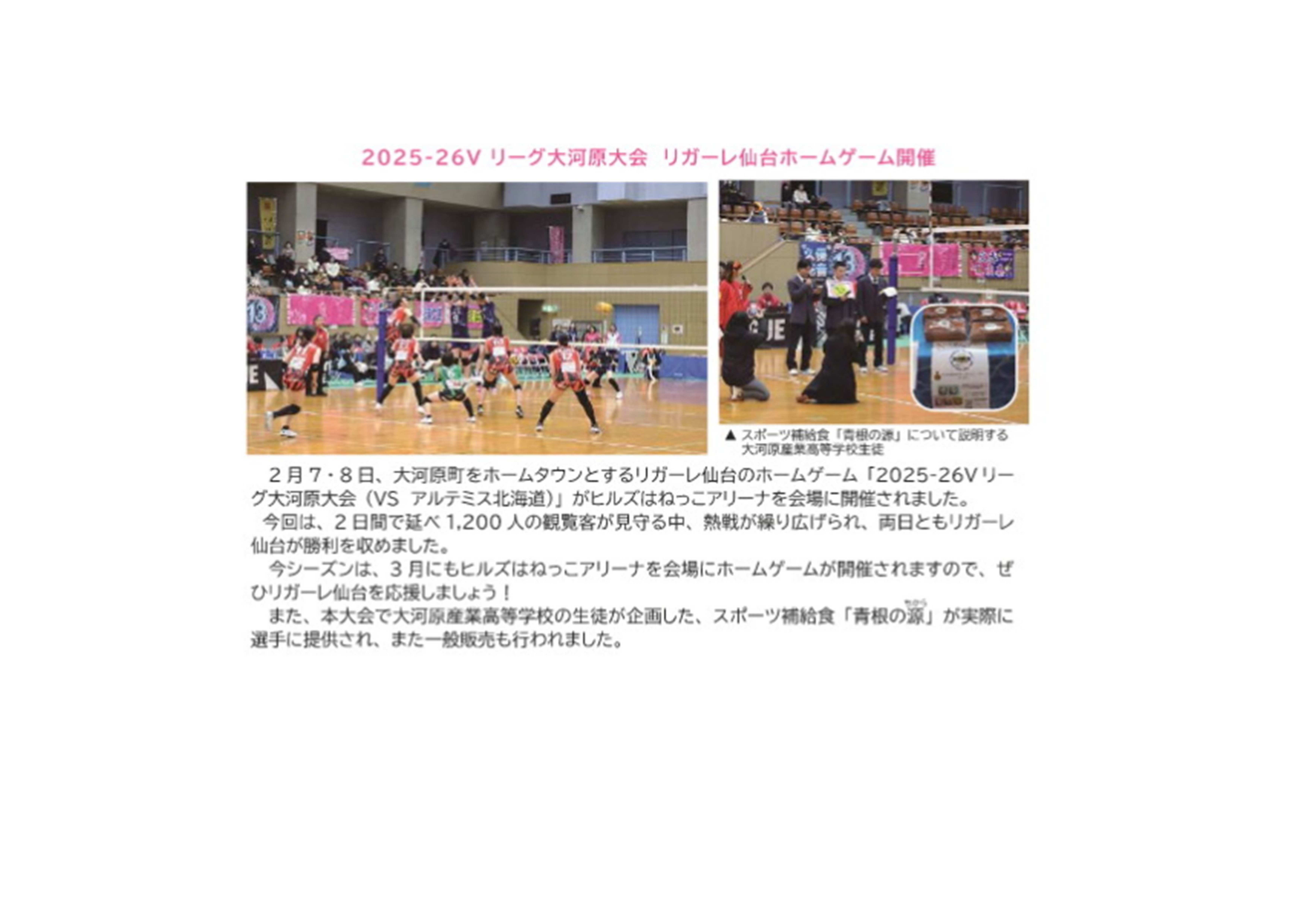 2025-26Vリーグ大河原大会 リガーレ仙台ホームゲーム開催