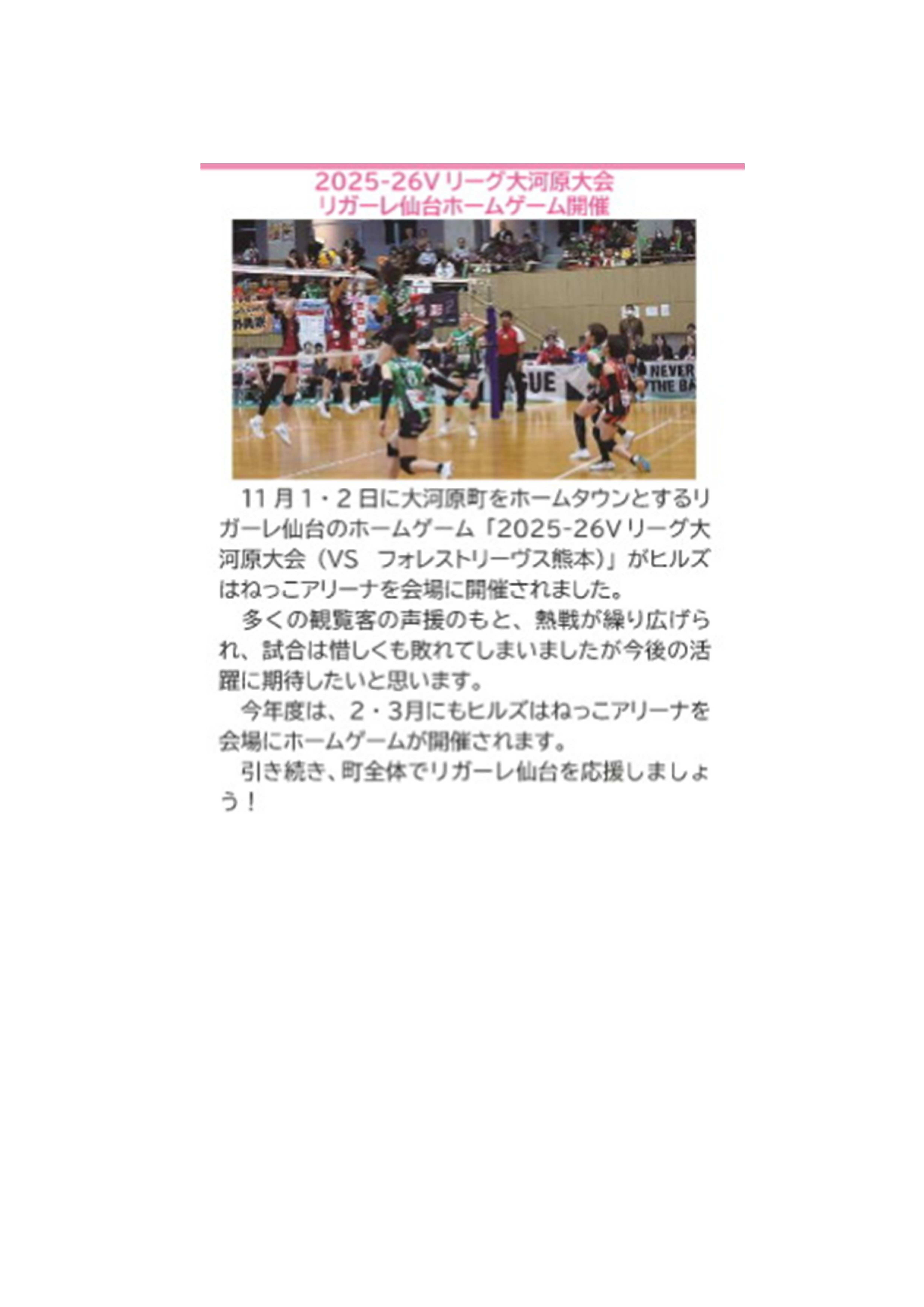 2025-26Vリーグ大河原大会リガーレ仙台ホームゲーム開催